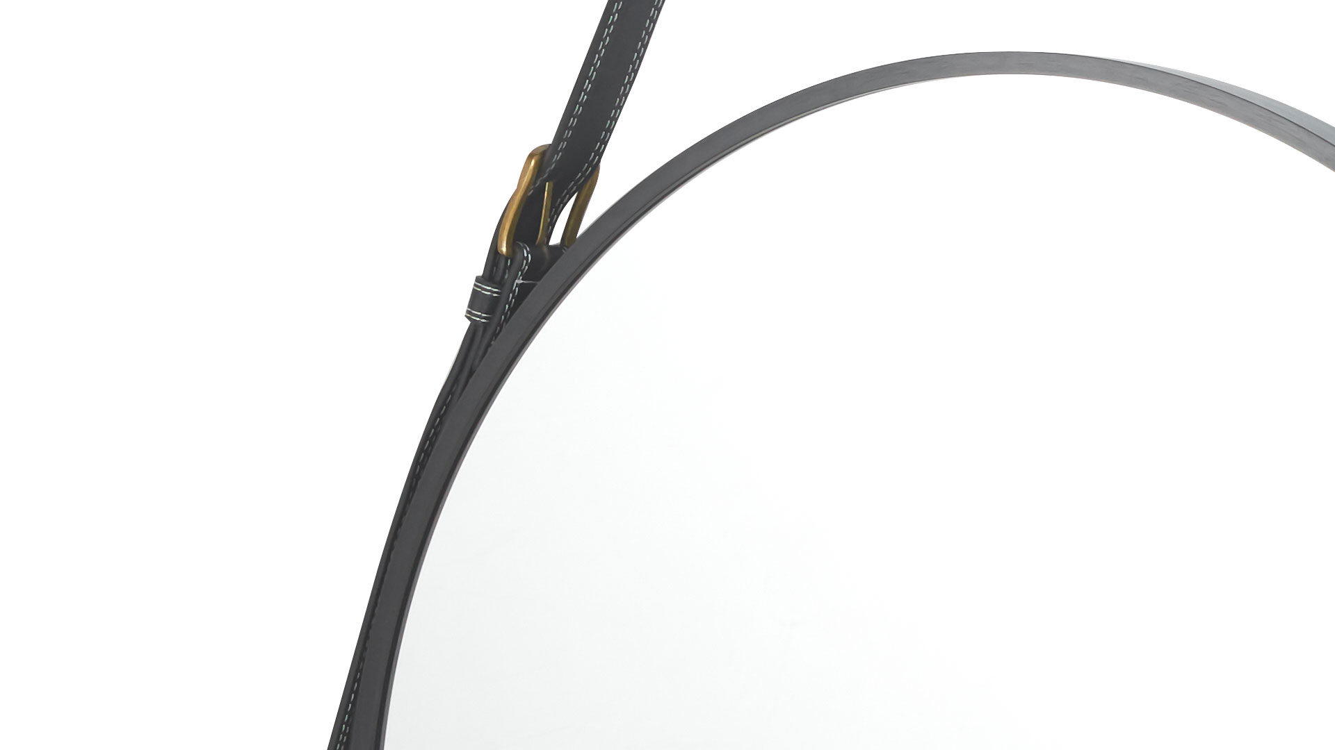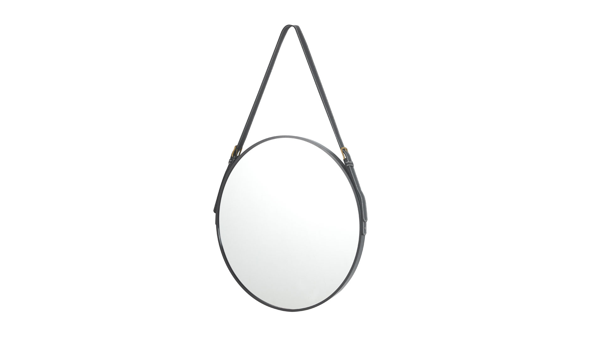 Este espejo circular combina un marco de aluminio negro con un cinturón decorativo, aportando un toque moderno y sofisticado a cualquier ambiente. Su diseño minimalista y su estructura liviana lo hacen ideal para recibidores, dormitorios o baños.