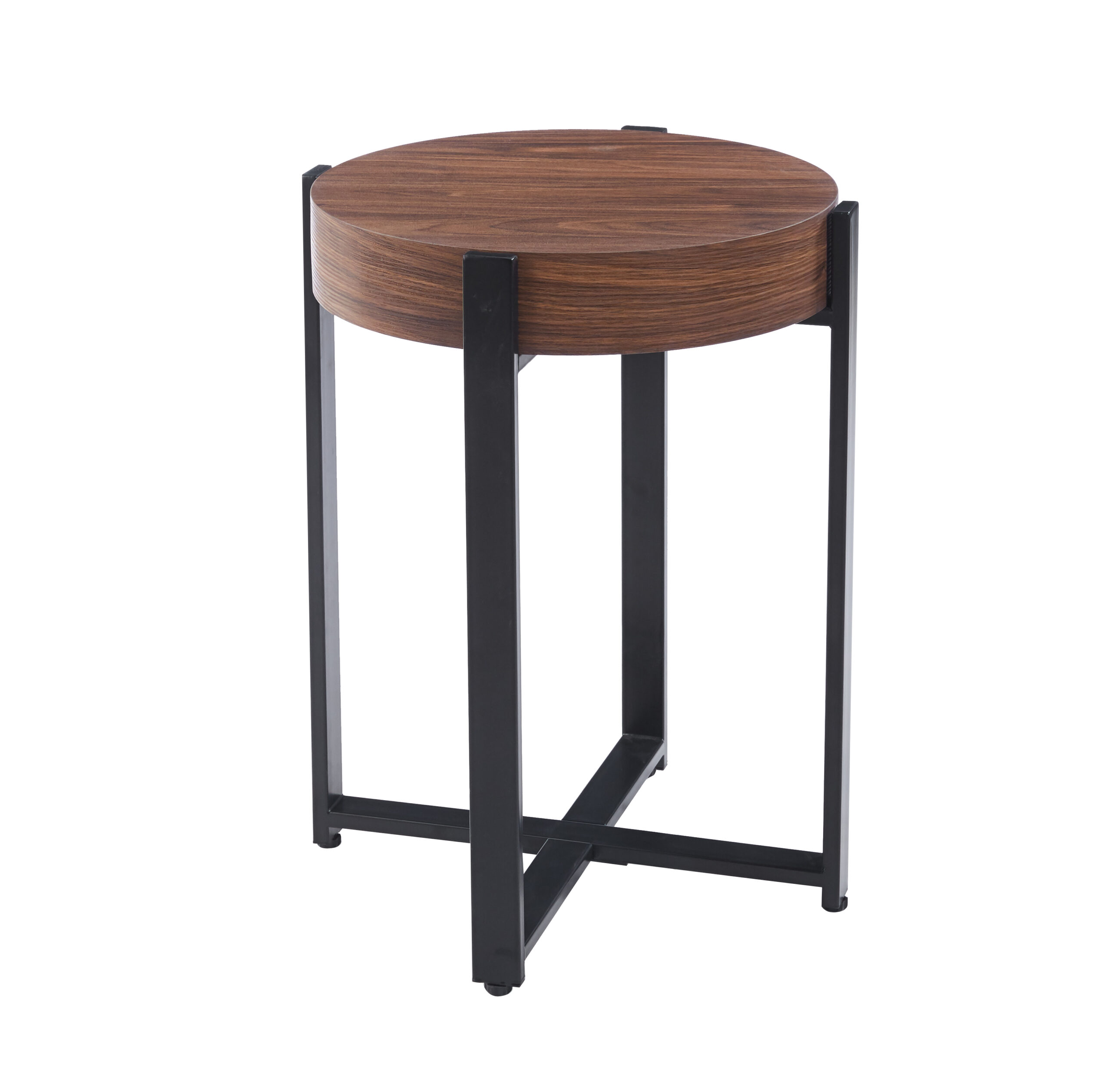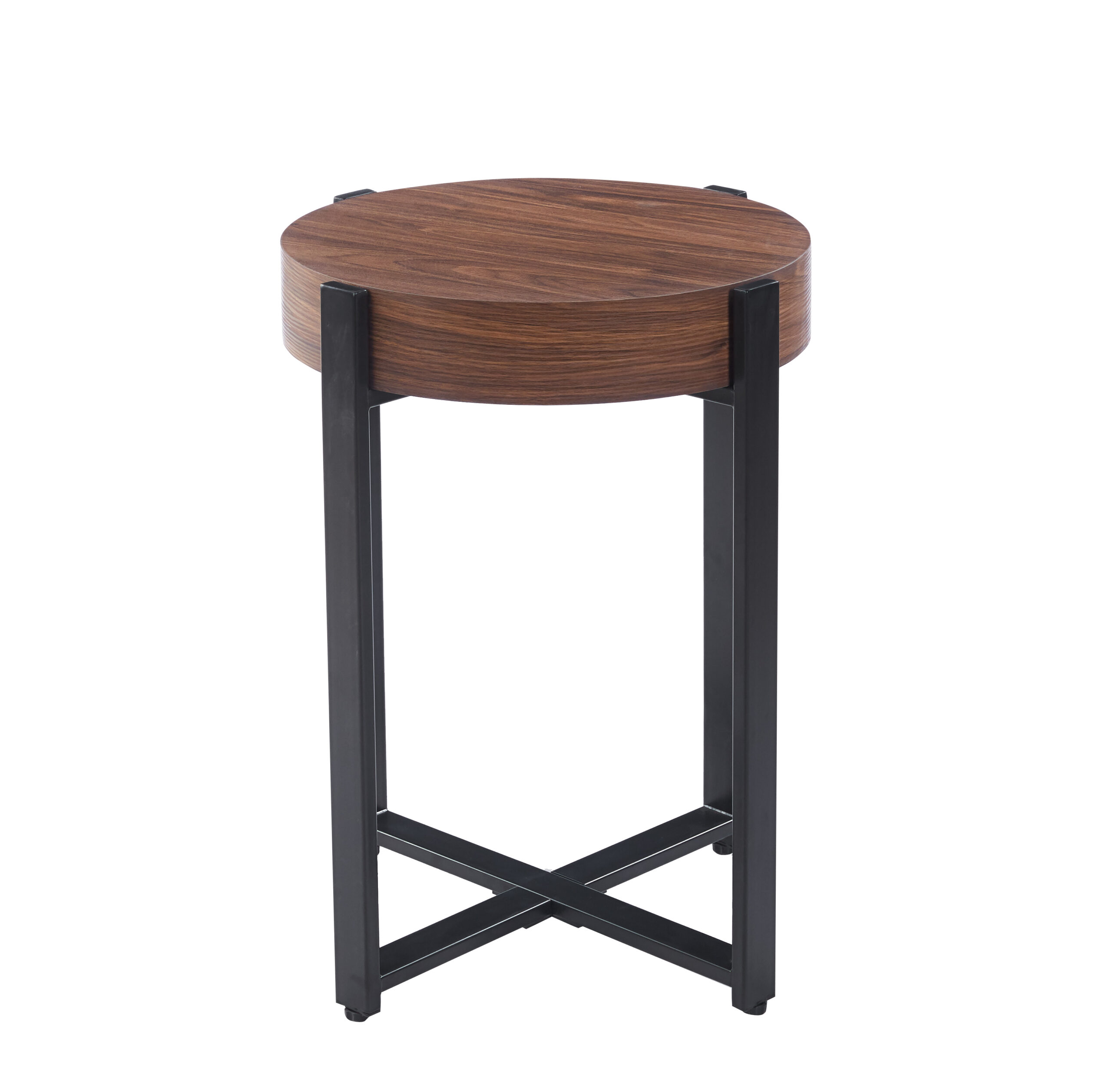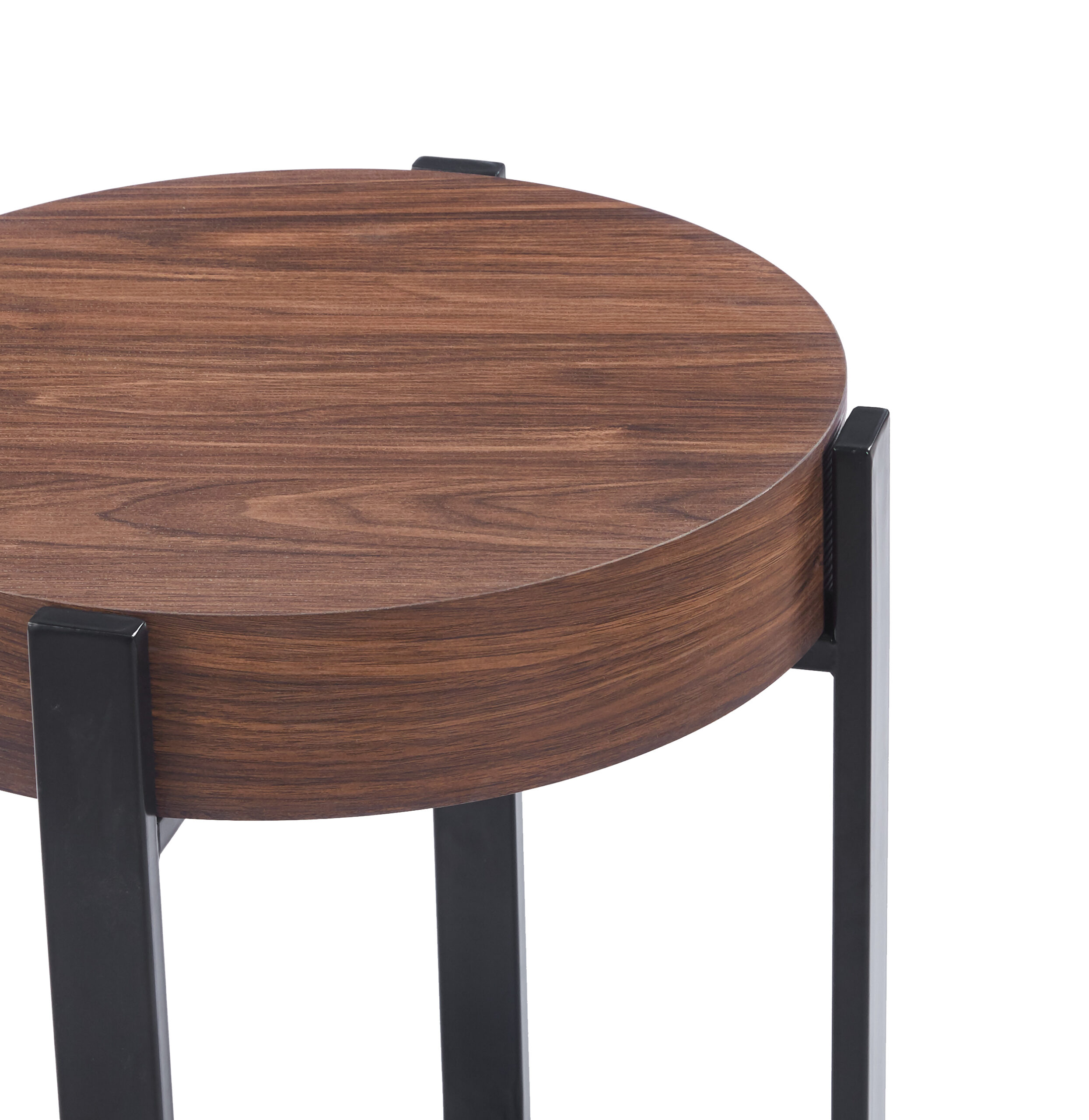 La mesa Connor Auxiliar mantiene la estética contemporánea de la línea, incorporando una altura mayor que la vuelve ideal como mesa de apoyo junto al sofá o en distintos sectores del living. Su tapa circular en MDF con acabado efecto madera aporta calidez visual, mientras que su estructura metálica con pintura negra ofrece firmeza y durabilidad.