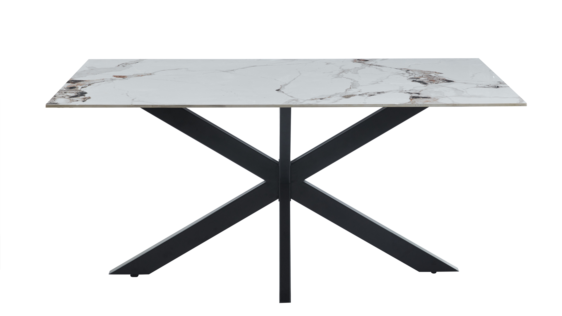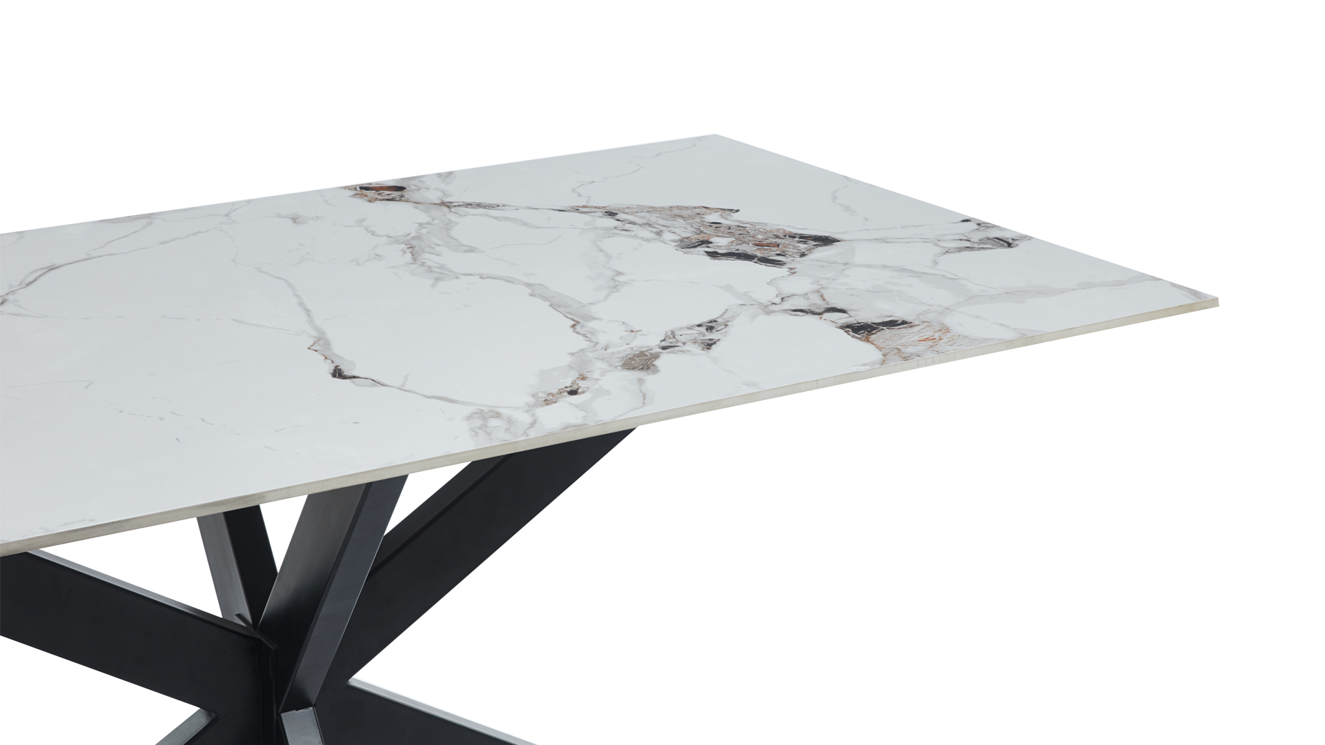 La mesa Liam aporta elegancia y modernidad a cualquier espacio. Su tapa de cerámica de 10 mm con efecto mármol combina sofisticación y resistencia, mientras que la base de metal con terminación en matte black powder coating ofrece estabilidad y un look contemporáneo.