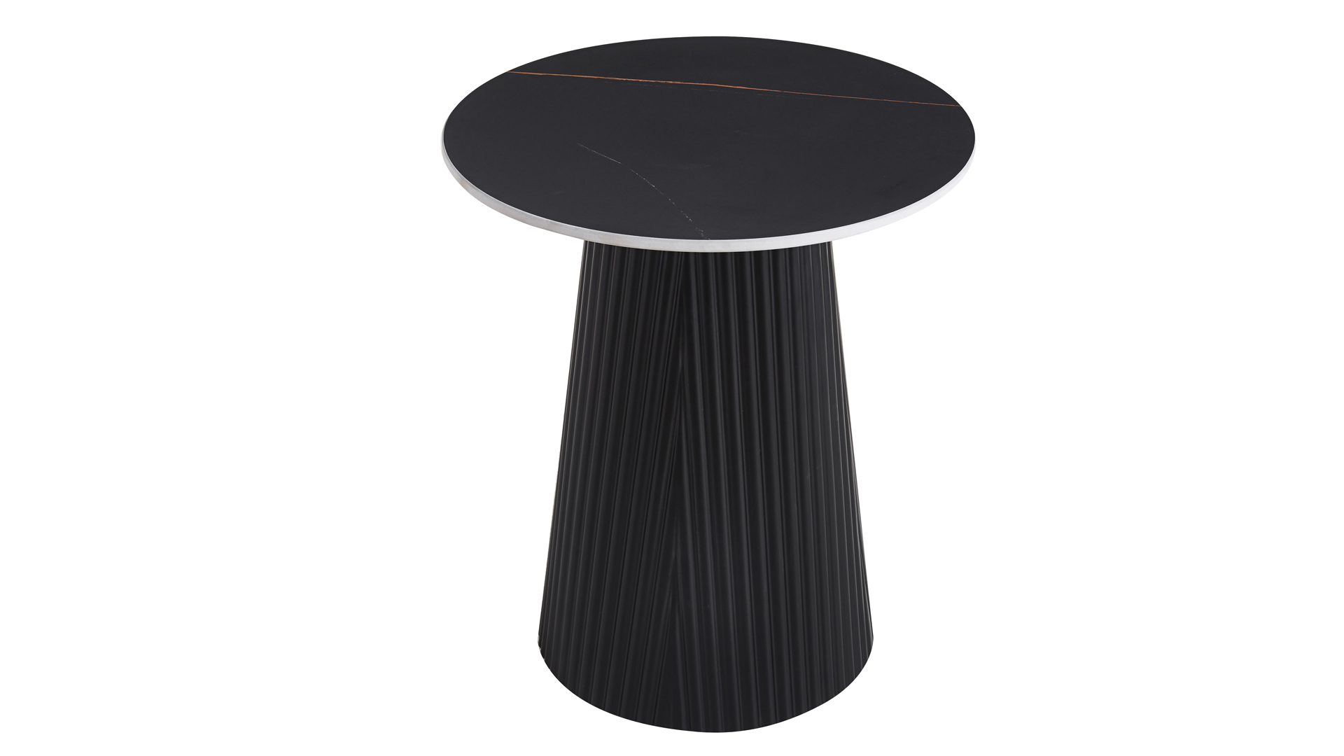 Diseño contemporáneo y líneas puras que elevan cualquier ambiente. Su tapa de cerámica marmolizada combina resistencia y elegancia, mientras la base cónica acanalada en tono blanco aporta textura y carácter. Ideal como complemento junto a un sofá o en espacios de estilo minimalista y luminoso.