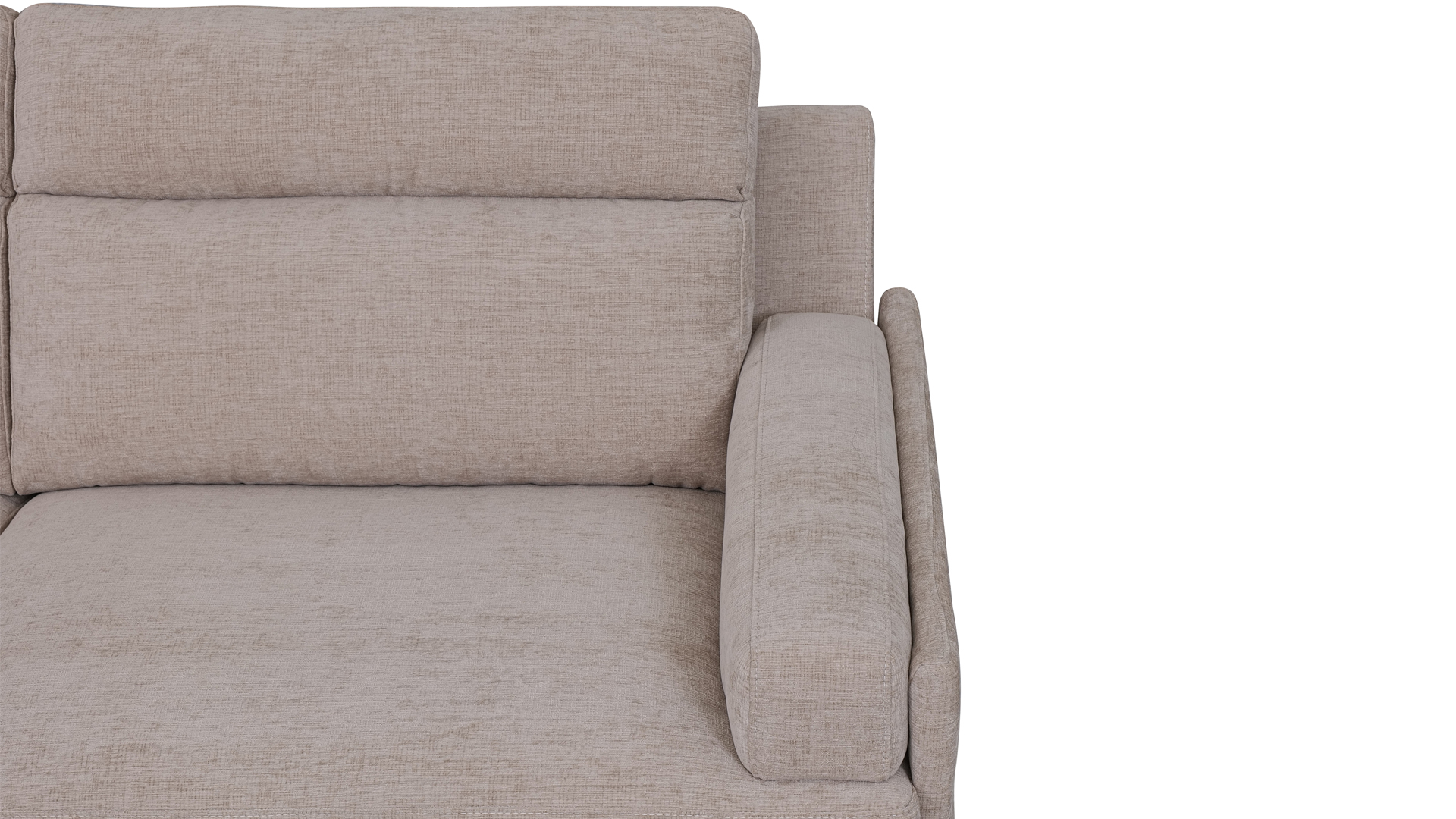 Este sofá combina líneas contemporáneas con una comodidad excepcional gracias a su estructura de alta densidad y respaldos acolchados que invitan a relajarse.