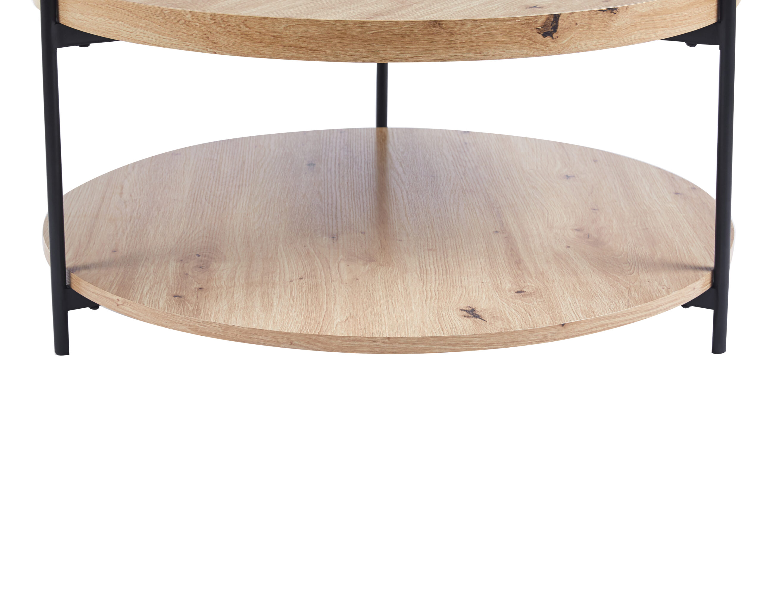 La mesa William combina diseño moderno y funcionalidad en una pieza ideal para complementar el living. Su tapa circular en MDF con acabado efecto madera aporta calidez visual, mientras que su estructura metálica con pintura negra mate brinda firmeza y un estilo contemporáneo.
