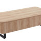 Fabricada en MDF de 18 mm con un delicado acabado símil madera y una estructura metálica de líneas firmes en color negro mate, ofrece durabilidad y un toque contemporáneo ideal para cualquier ambiente.